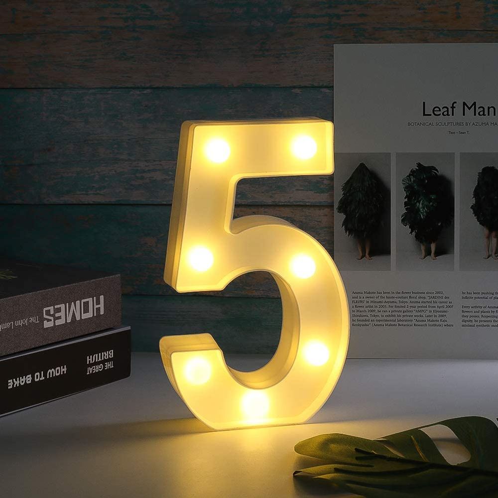 Цифра 5 светодиодная 21 см, от батареек , теплый белый