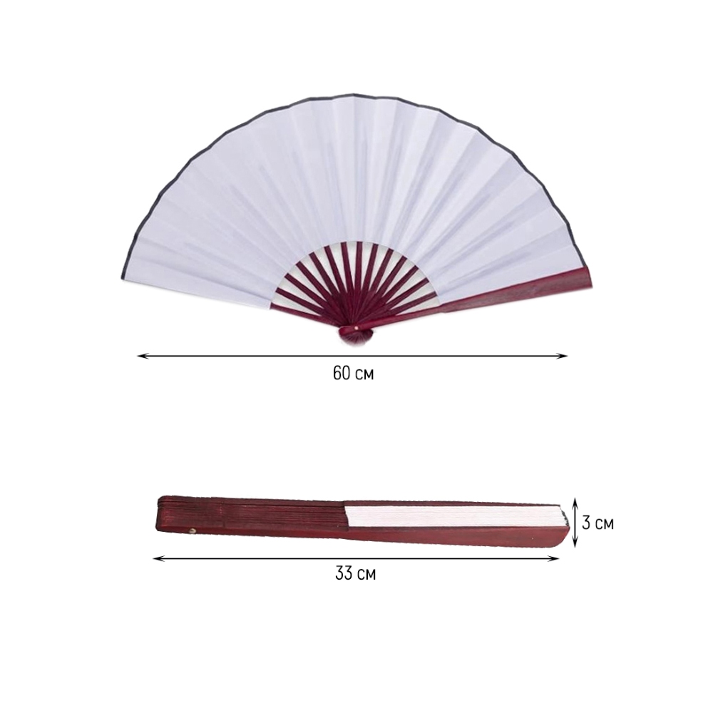 Двухсторонний складной веер для танца. Выполнен из бамбука и плотной ткани.
