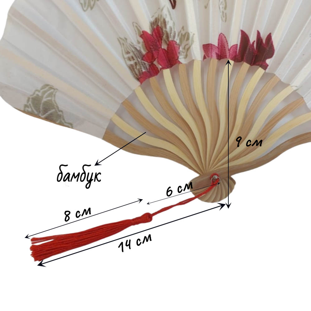 Веер круглый с цветочным узором 29х15 см, №13
