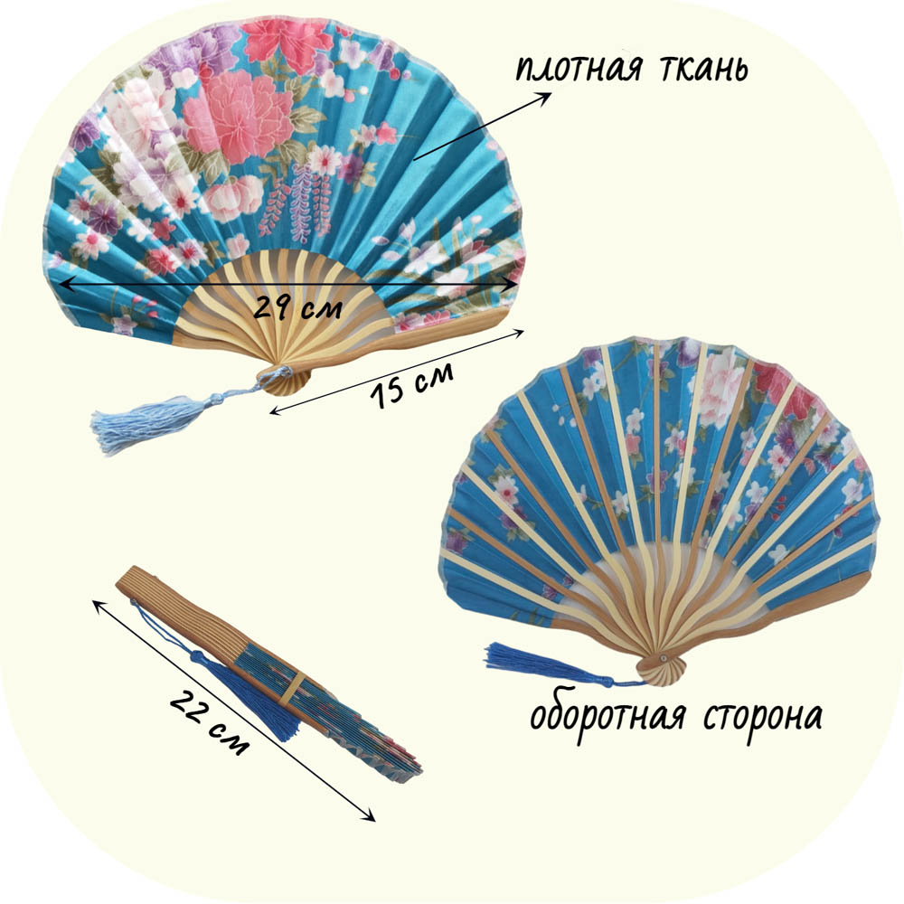 Веера тканевые с цветочным узором круглые 29х15см