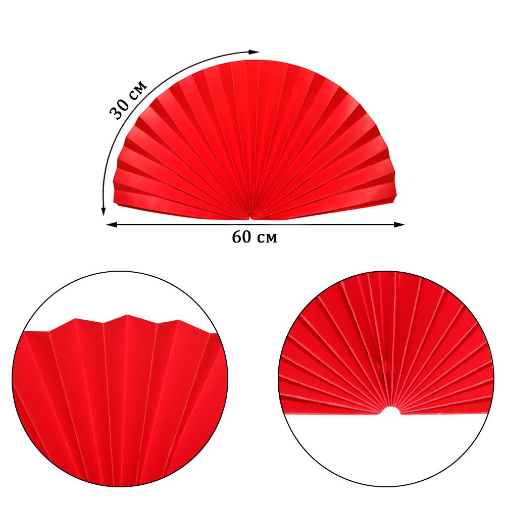 Веер-гармошка 160г/м 60 см, ярко-красный