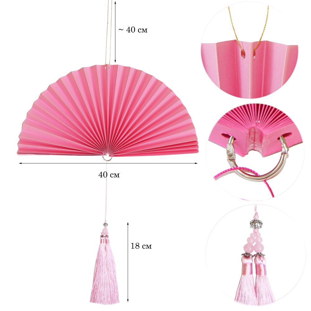 Веер-гармошка с кисточкой, 40 см, розовый — 1 шт.