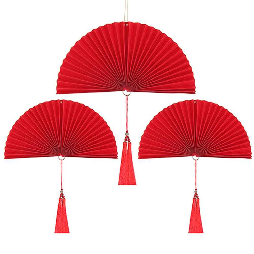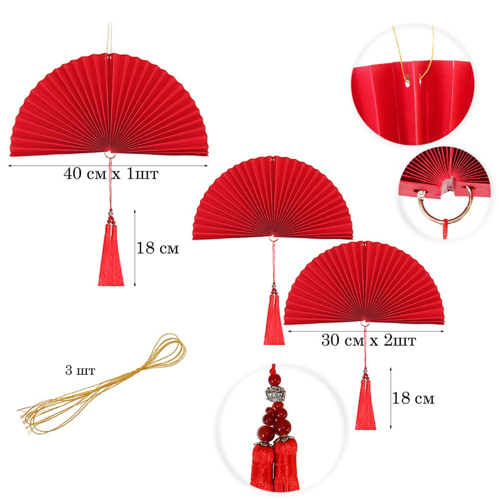 Веер-гармошка с кисточкой НАБОР 30см, 30см, 40 см, красный