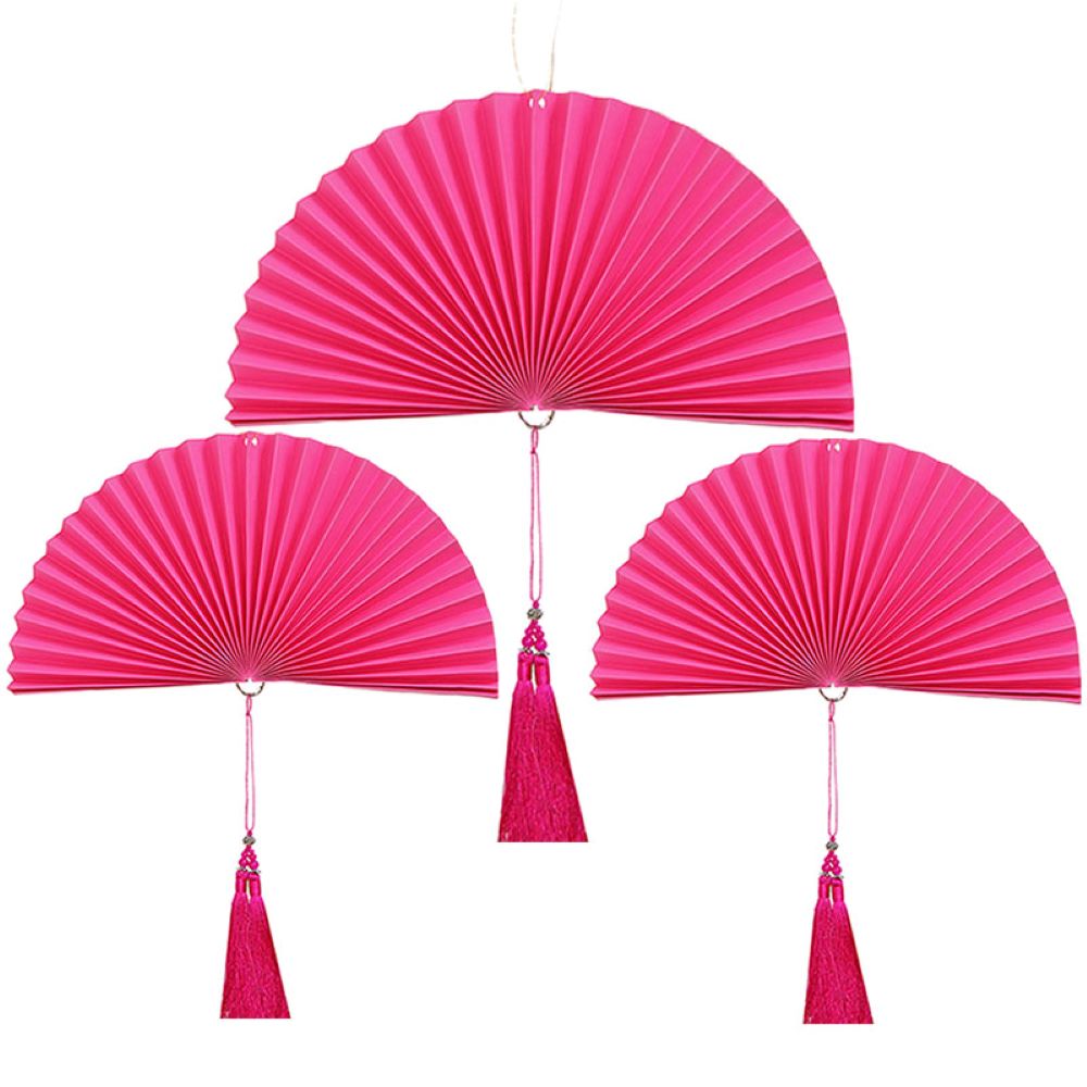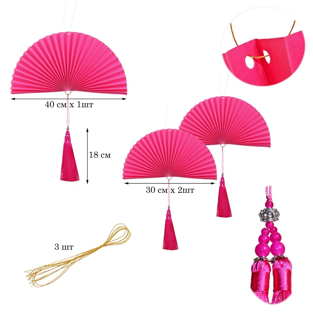 Веер-гармошка с кисточкой НАБОР 30см, 30см, 40 см, малиновый