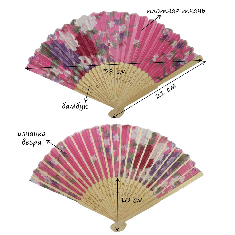 Веер с цветочным узором 38х21 см, №4