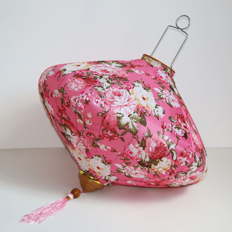 Это традиционные подвесные фонарики ручной работы, изготовленные из шелкового материала с элегантным цветочным узором, которые делают его изысканным и красивым.
