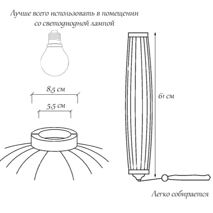 Диаметр фонарика составляет 38 сантиметров, что позволяет ему гармонично вписаться в интерьер любого помещения. Кисточка добавляет фонарику особую изюминку и придаёт ему уникальный вид.