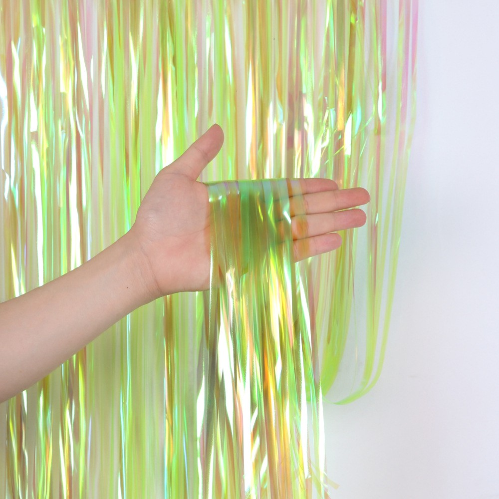 Занавес дождик 1 х 3 м,прозрачный с голографией, Зеленый