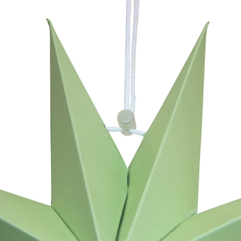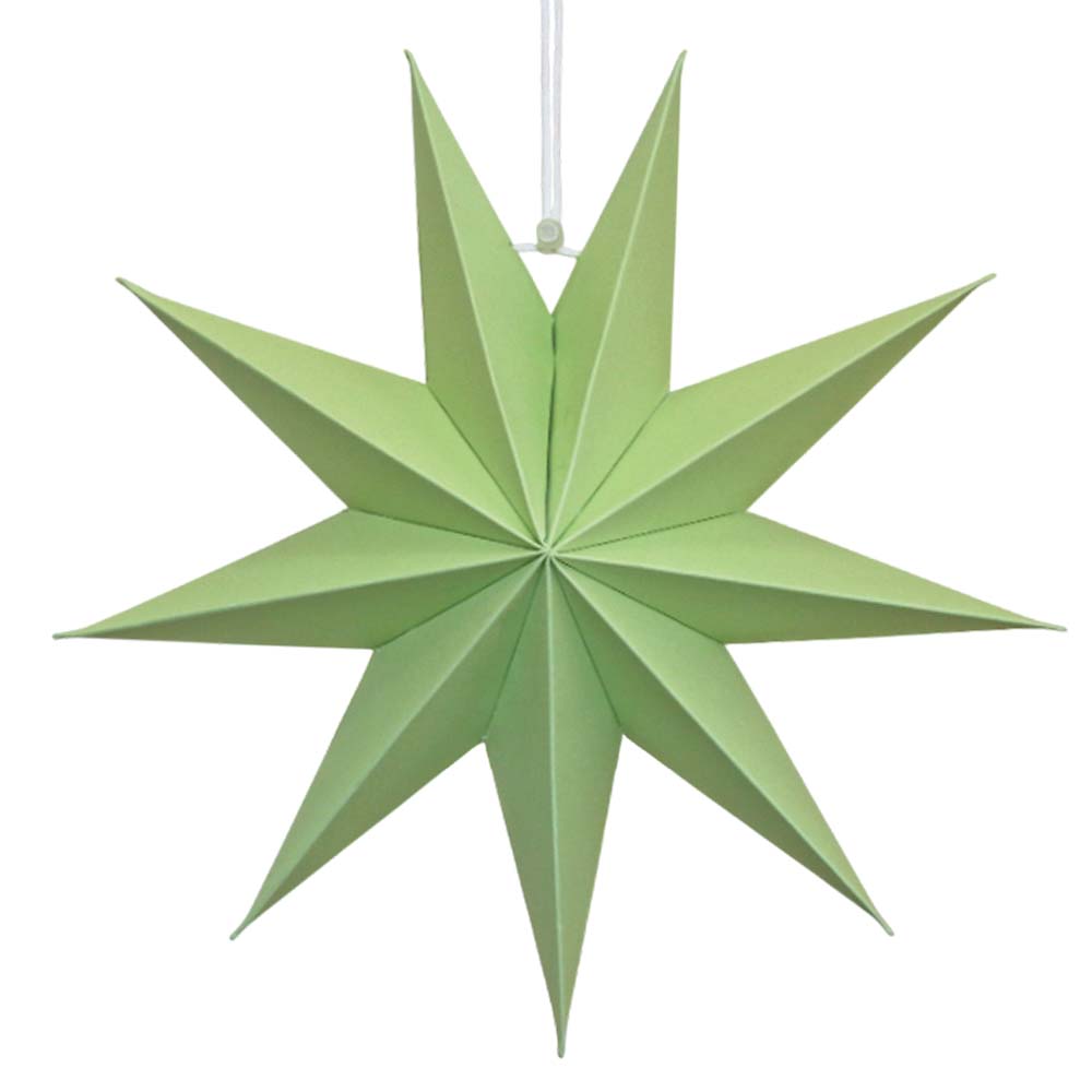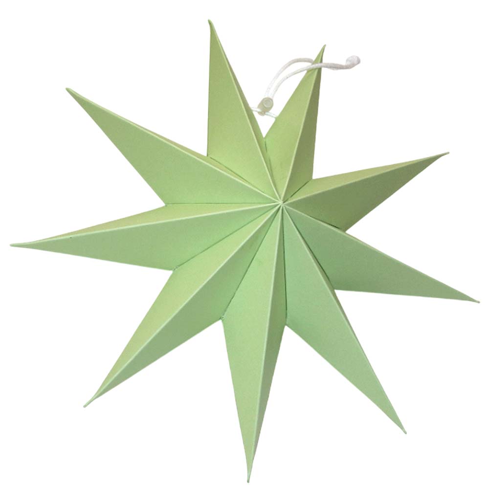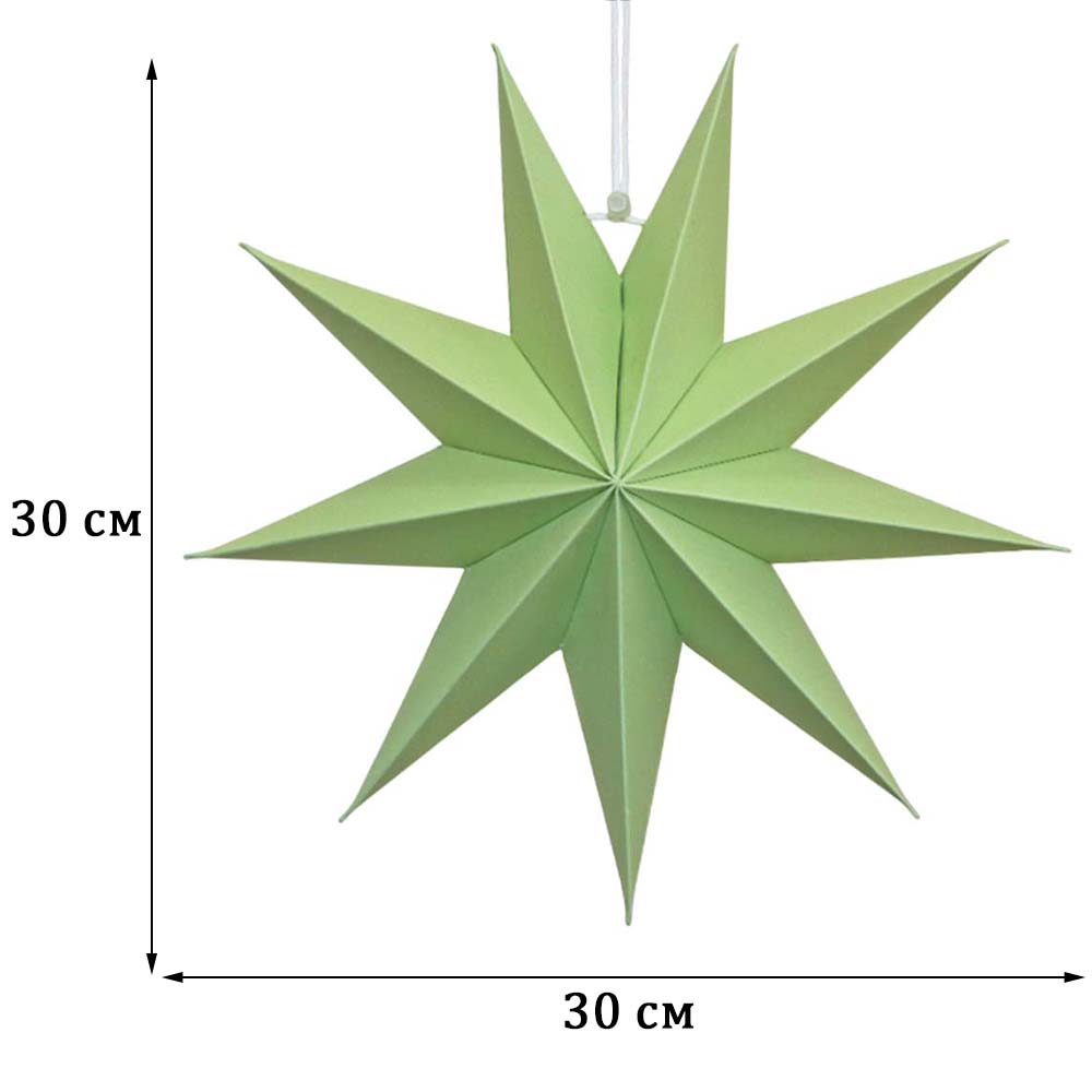 Объёмная декоративная звезда из картона диаметром 30 см с 9 лучами. Оснащена встроенным шнурком для подвешивания. Поставляется в компактном сложенном виде и быстро собирается: специальный шнурок при затягивании придаёт изделию объём и фиксирует форму. После сборки звезда остаётся устойчивой без дополнительных креплений и может использоваться многократно.