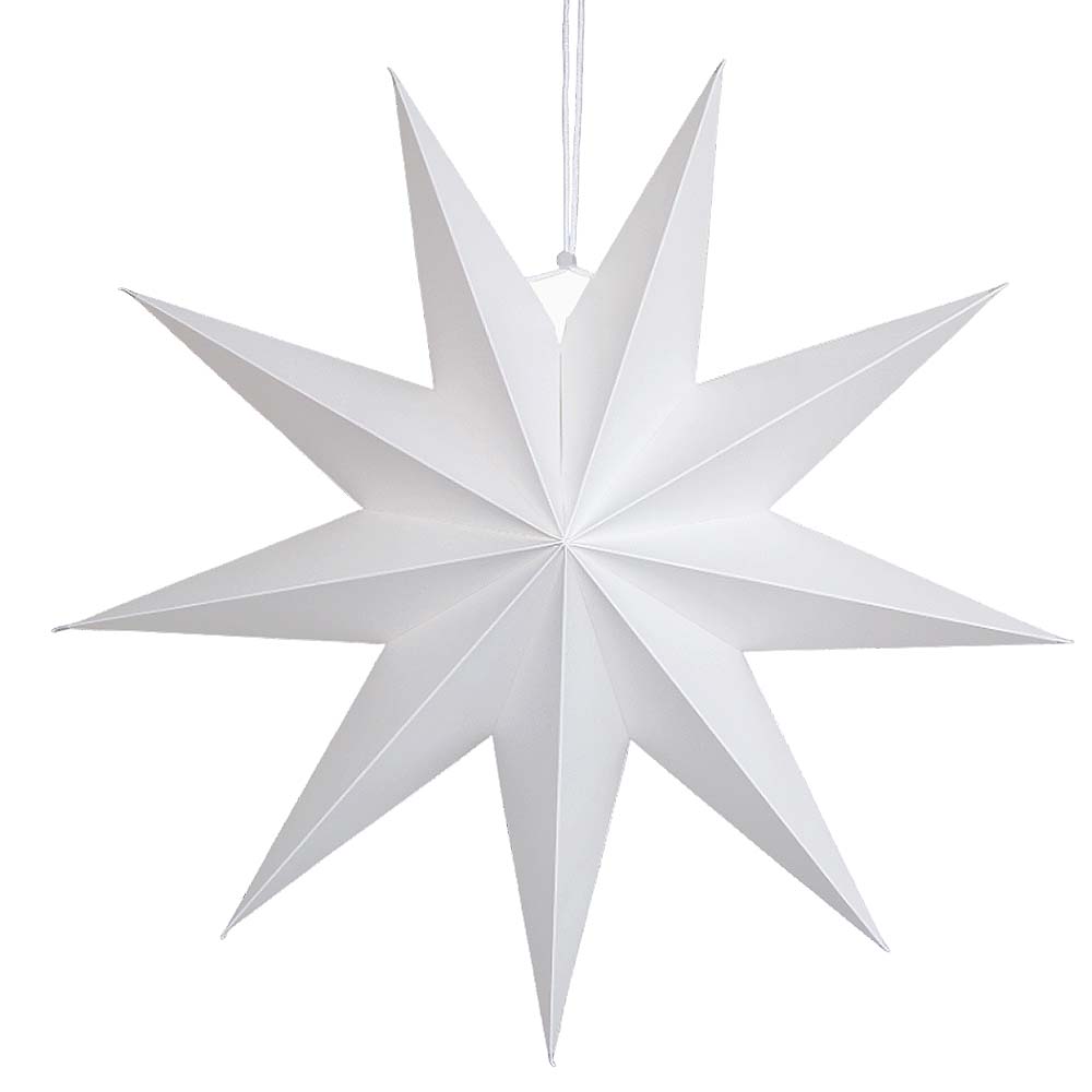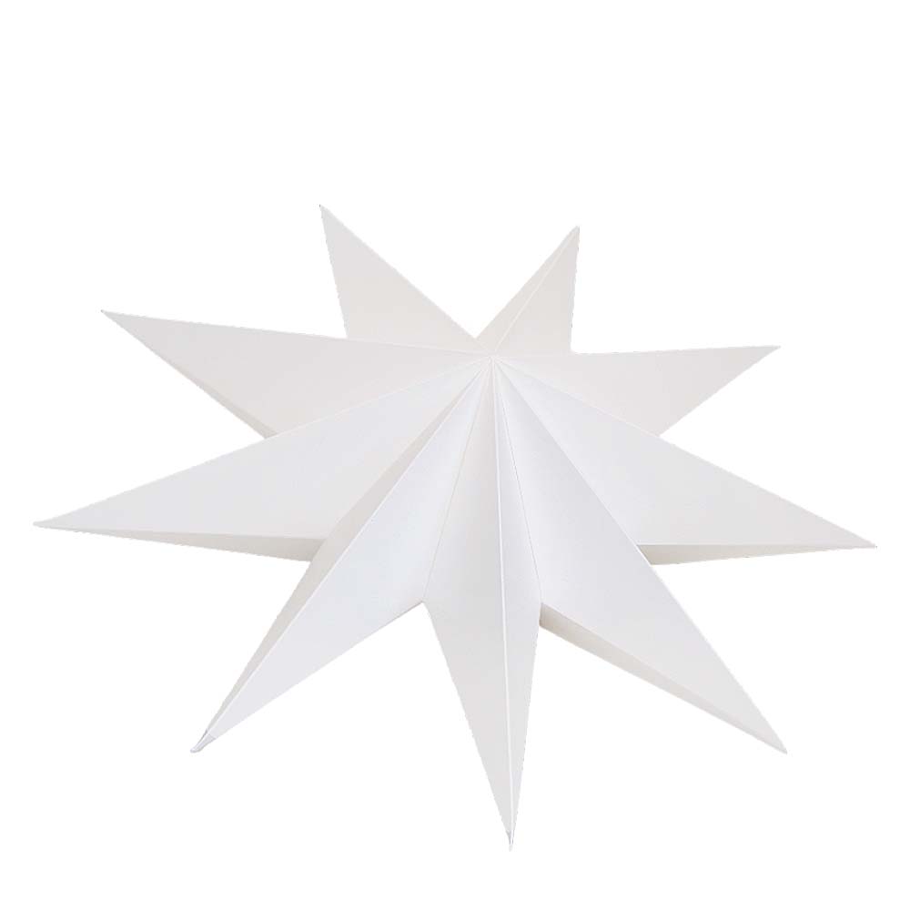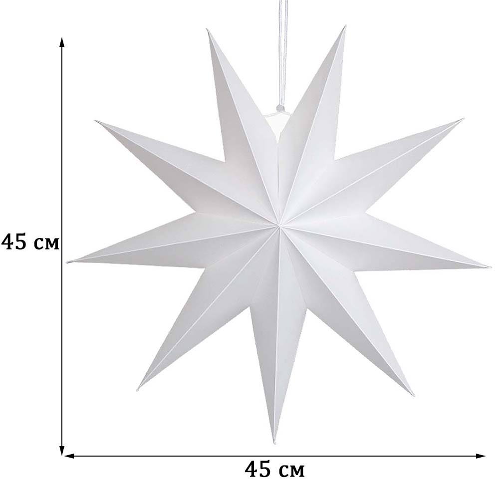 Объёмная девятиконечная звезда 45 см — декоративный элемент для интерьера и праздничного оформления. Лёгкая интерьерная звезда из картона хорошо держит форму и создаёт выразительный объём. Поставляется в сложенном виде, в комплекте шнур для фиксации объёма и подвеса.