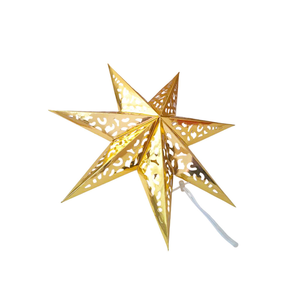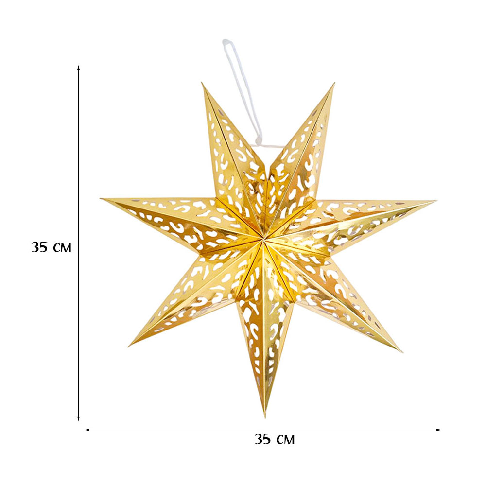 Семиконечная объемная звезда 35 см — великолепный декор из тонкого перфорированного картона. Создает красивые световые эффекты. Поставляется в сложенном виде, в комплекте шнур для фиксации объема и подвеса.